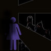 dark fuzzy brain in a blue room