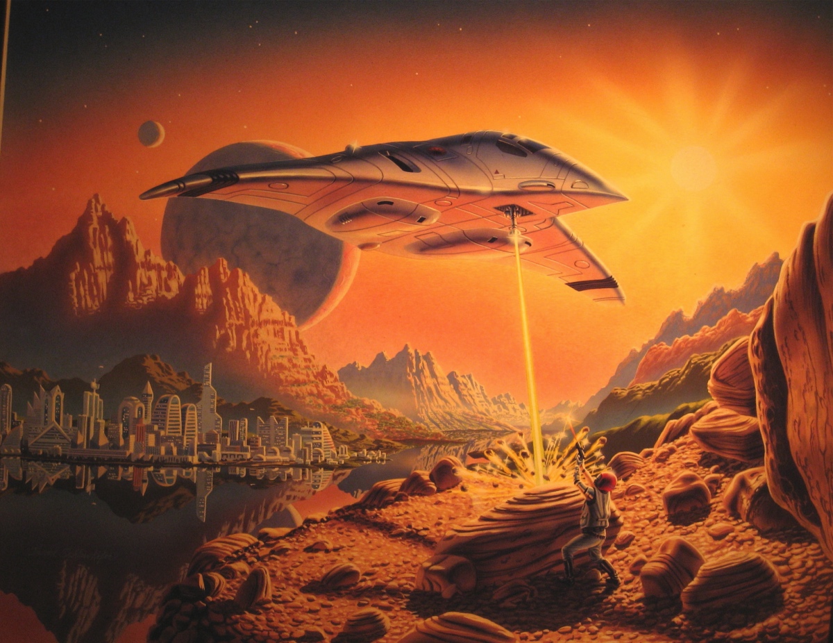 A materializing spaceship firing scintillating arpeggios at an indefinable nomad, a sanskrit mirage of a metropolis, a sky with an atmosphere so sulfurous the sun is a hazy impression, and moons standing in euclidean symmetry orbiting a drama with no witness.