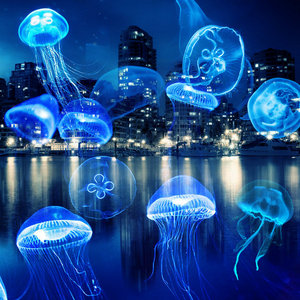 These tracks are roughly inspired by music I heard in a dream that was a documentary about blue jellyfishes and how they were coming out of the sea to roam the streets of a big city with tall buildings, slowly floating in the air.