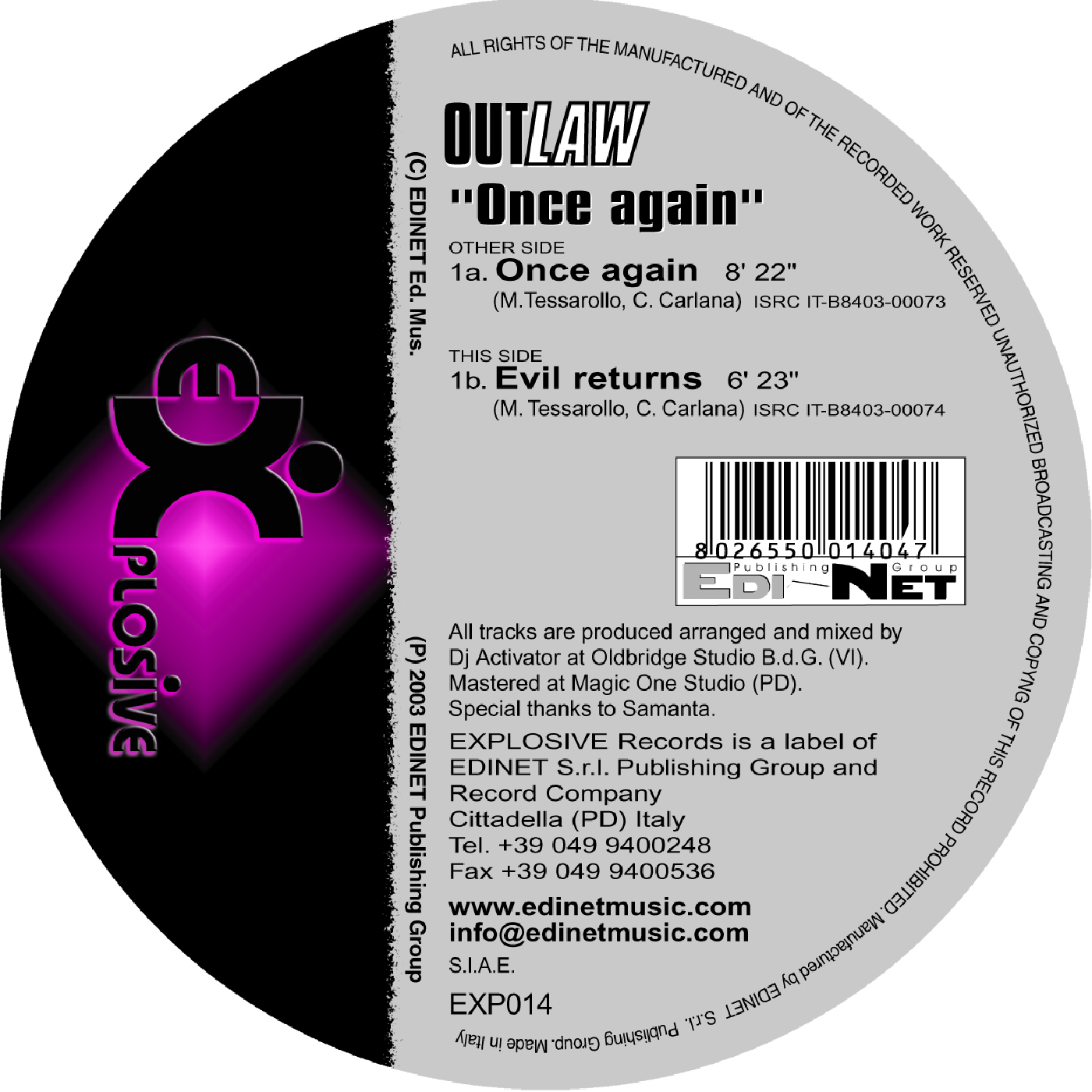 All tracks are produced arranged and mixed by Dj Activator at Oldbridge Studio B.d.G. (VI). Mastered at Magic-One Studio (PD).