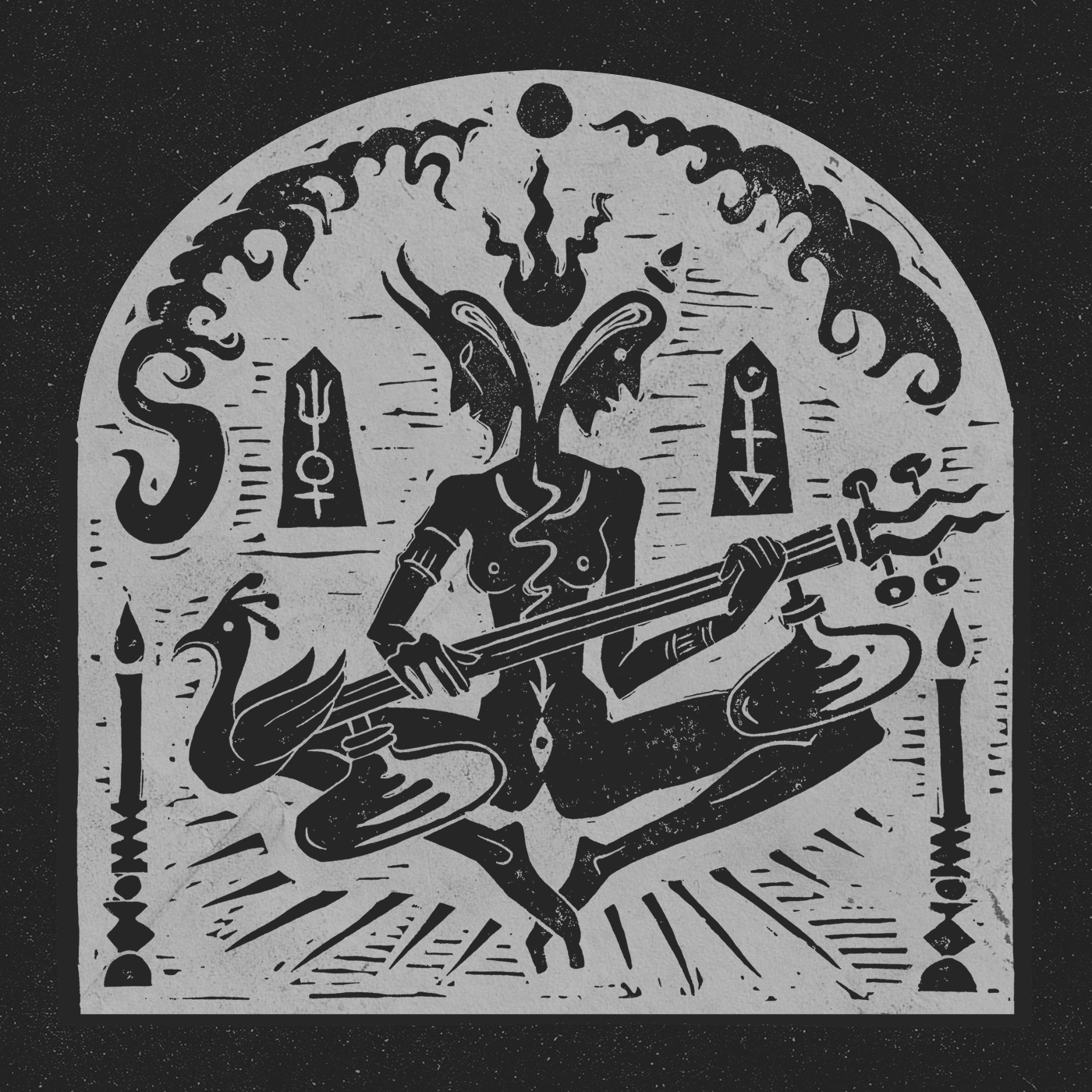 A.I.T.H.G.: electric saraswati veena, electric sitar, self made tanpura, temple bow, slide guitar, mantra chanting, self made piezo percussion devices, sistrum, analogue & modular synthesizers, effects, mixing, mastering, sigils, cover engraving & artwork.