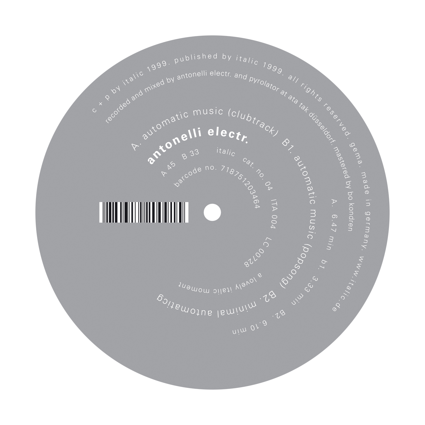 ITA004 ℗ 1999 Italic Recordings © 1999 Italic Songs