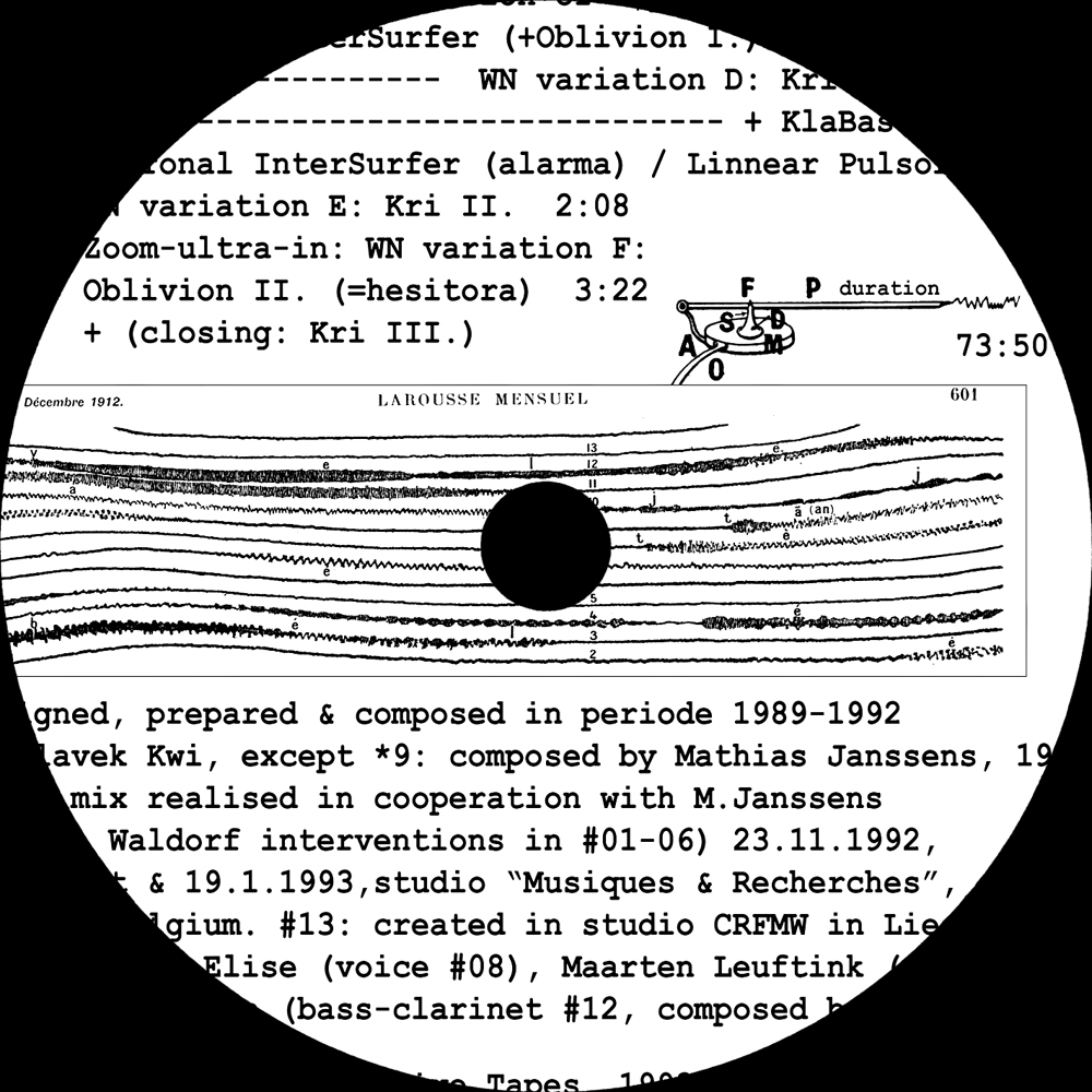 Final mix created in cooperation with M. Janssens (synth. Waldorf minimal interventions in #01-06) 23.11.1992,
