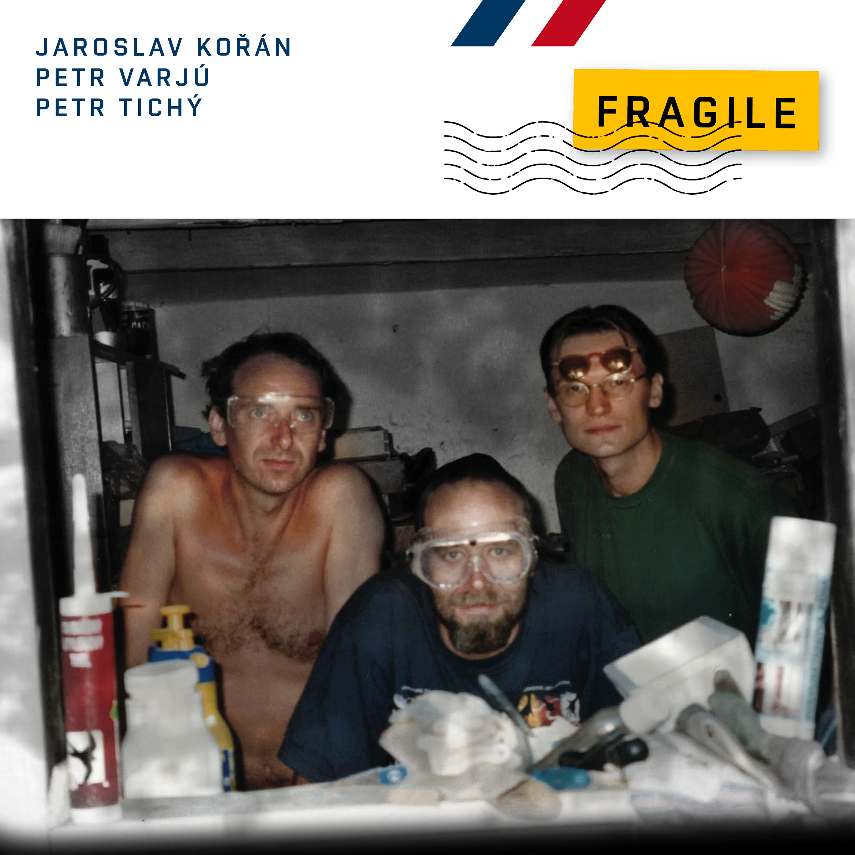For twenty years, this forgotten recording sat in a drawer. In December 2023, the trio Jaroslav Kořán, Petr Varjú and Petr Tichý unveiled the first part of the unreleased recording of a free improvisation created during a holiday stay in the Šumava village of Mačice. More than three hours of studio material was cleaned up, edited. The first part of the recordings, called Par Avion (the name under which the trio originally performed), is now complemented by the second part, Fragile.
