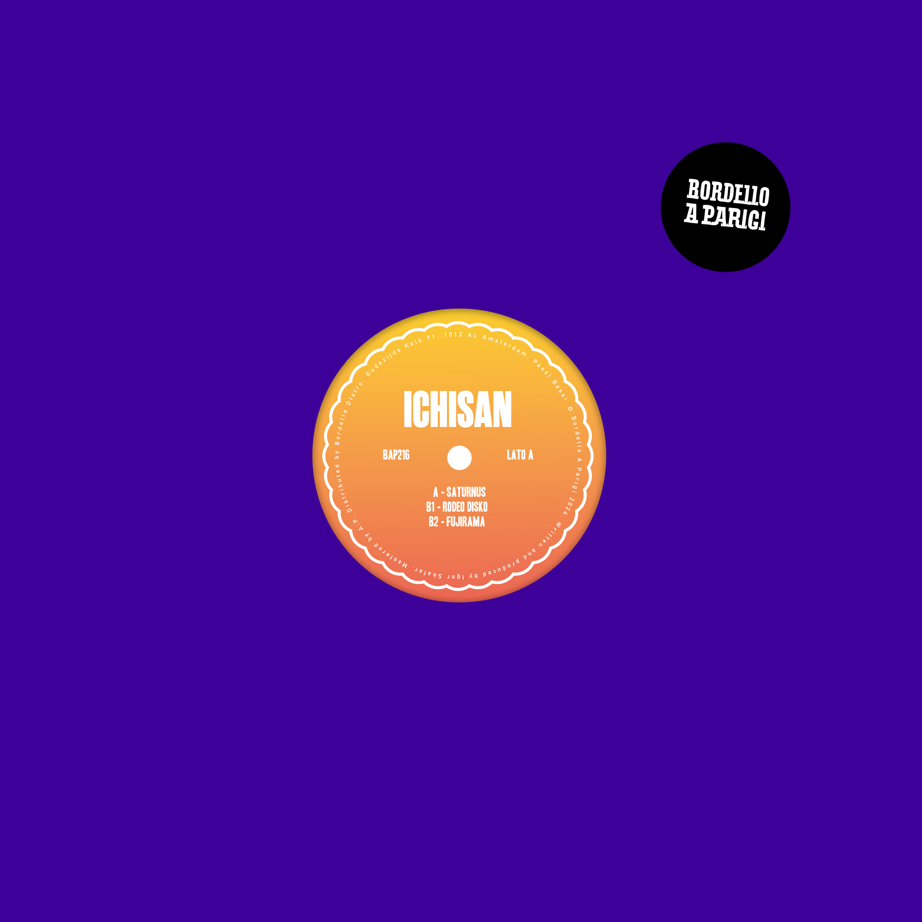 Bordello A Parigi is delighted to announce the return of Ichisan to the label. The Slovenian producer draws on the soul of house, the clean lines of electro and smoky grooves of disco for Saturnus. Full-bodied percussion lays a path for curves of keyboard to mingle with throaty basslines, cosmic constellations blooming and bursting in this nine-minute odyssey. Off-kilter keys steady themselves into solid strings for “Rodeo Disko”, bubbles of funk rising to the surface as distant vocoders echo to the distance. An appreciation of the meandering melodies of the late 1970s permeates the three offerings. Percussive patterns shift with “Fujirama”. Droplets of drums gather to a racing rhythm, a spiralling synthline speeds while a thick dauby bass calms the tempo. This close is emblematic of the entire EP, clever and upbeat with an underlying intricacy that illustrates Ichisan’s evolution as an artist. A welcome return from a wonderful talent.