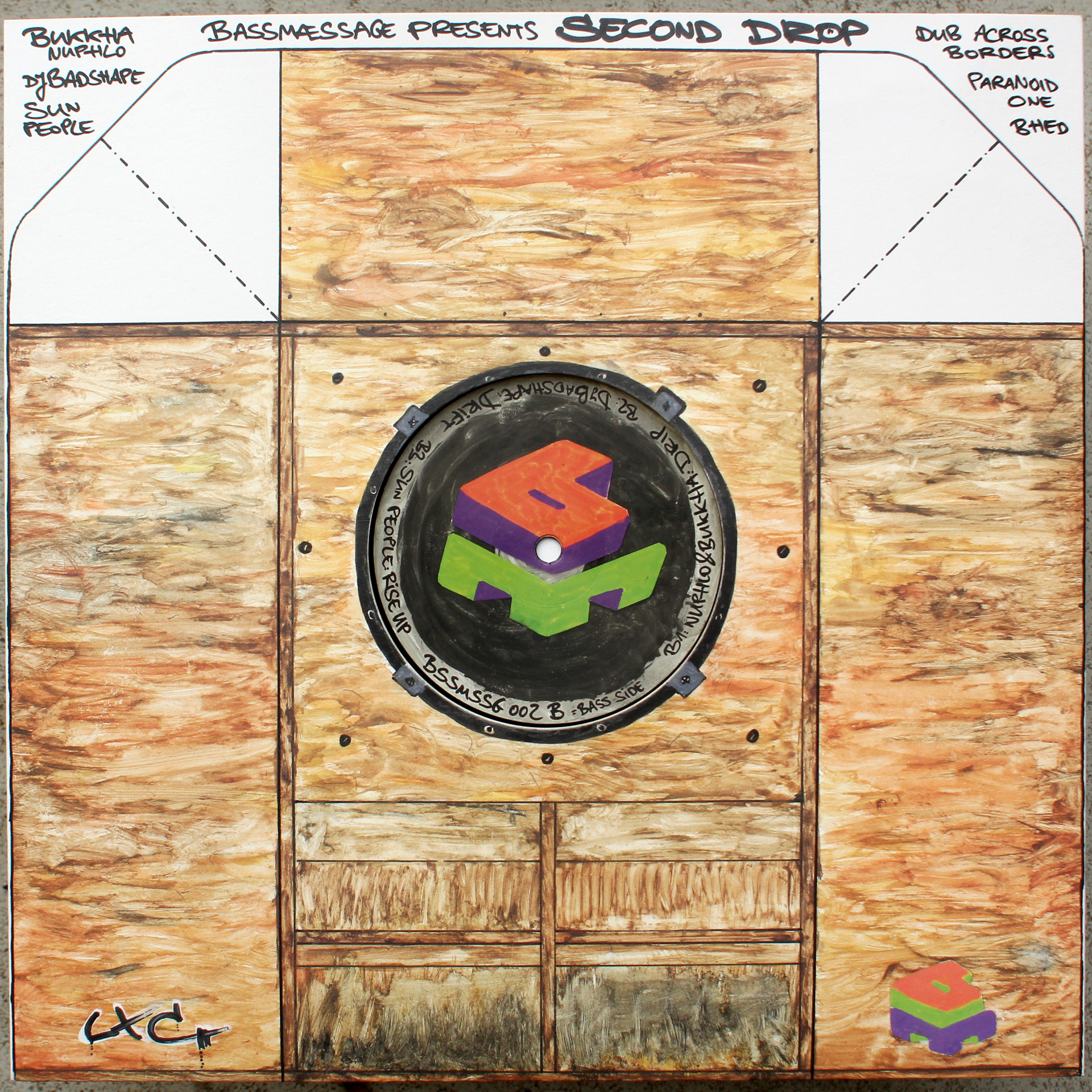 BSSMSSG 002, Bassmæssage label and A&R work is run by MRN, Dj Badshape, Tico and LXC, who also did vinyl mastering and the discosleeve artwörk - the Basstelbogen "Scoopwise", where you may built your own speaker model.