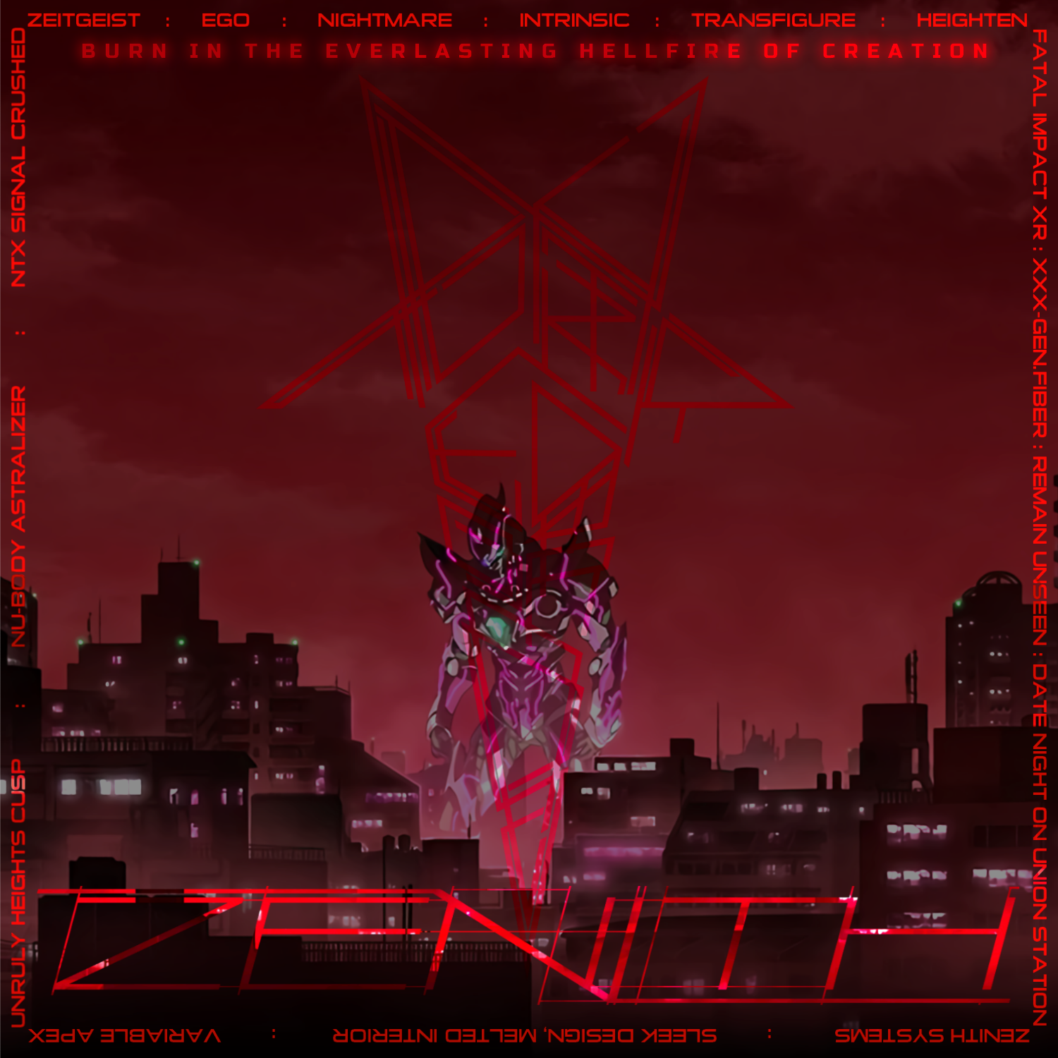 BURN IN THE EVERLASTING HELLFIRE OF CREATION Vrain - Writing, production, sampling, instruments, background vocals for tracks 4 and 5, aesthetic direction Aleph - Lyrics, vocals, writing Geist - Live keys, additional input and support nghttrrrs.bandcamp.com Thegn - Mixing, co-production, additional effects thegn.bandcamp.com Angel Marcloid - Mastering angelhairaudio.com fire-toolz.bandcamp.com