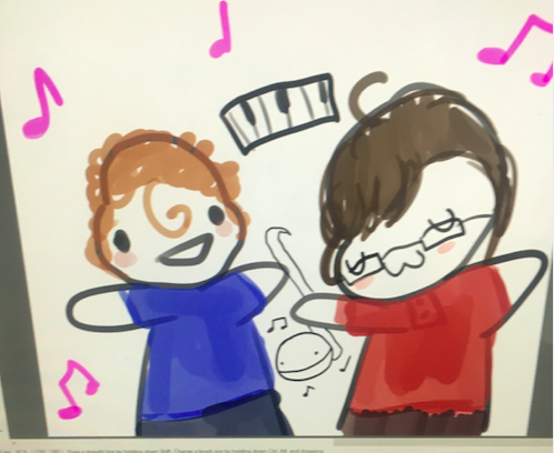 Alex: keyboards, vocals, percussion, ukulele, melodica