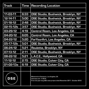 Album is a compilation of 13 tracks from the DSE Noise Box project starting in November 2011 to October 2012.