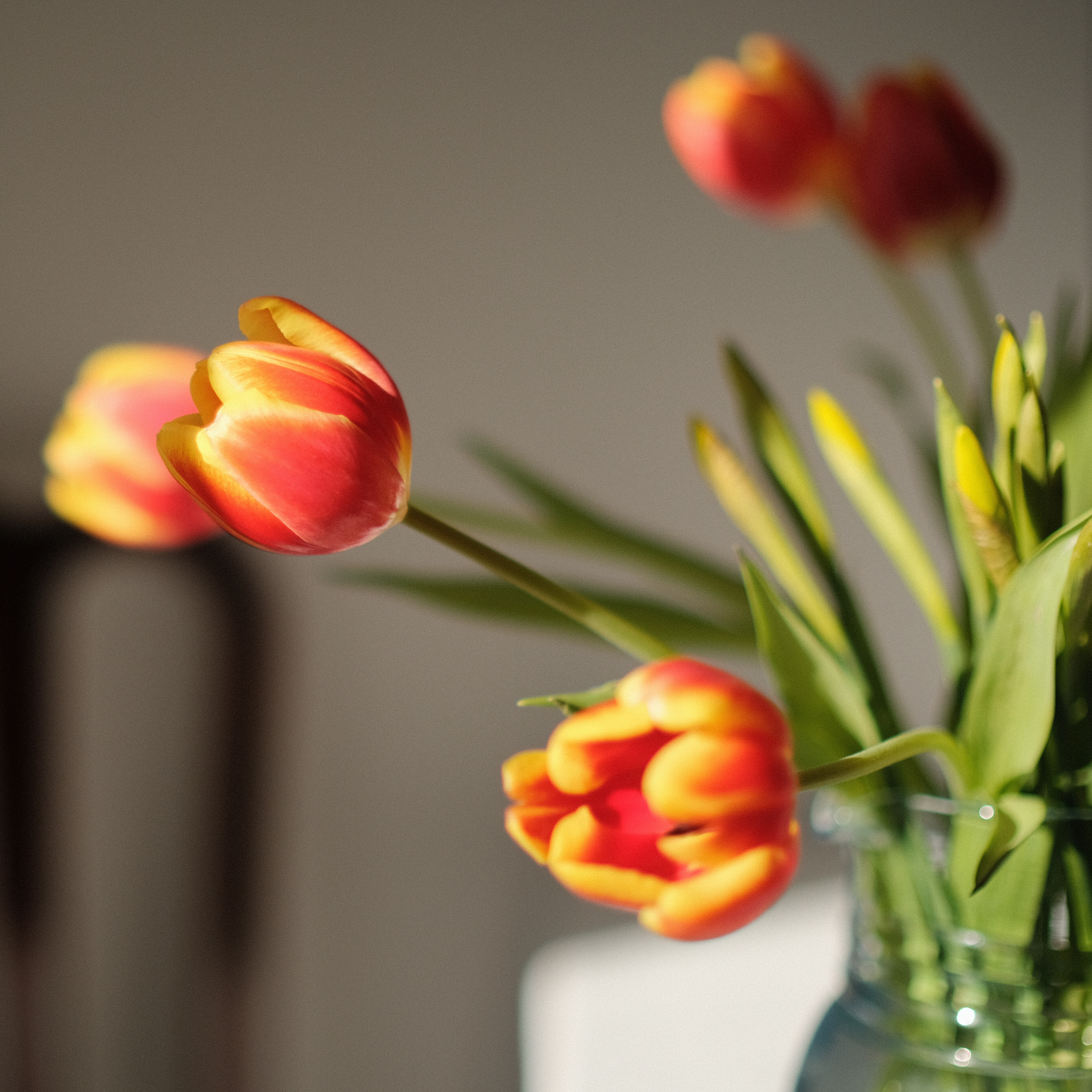 Tulips under warm light fading