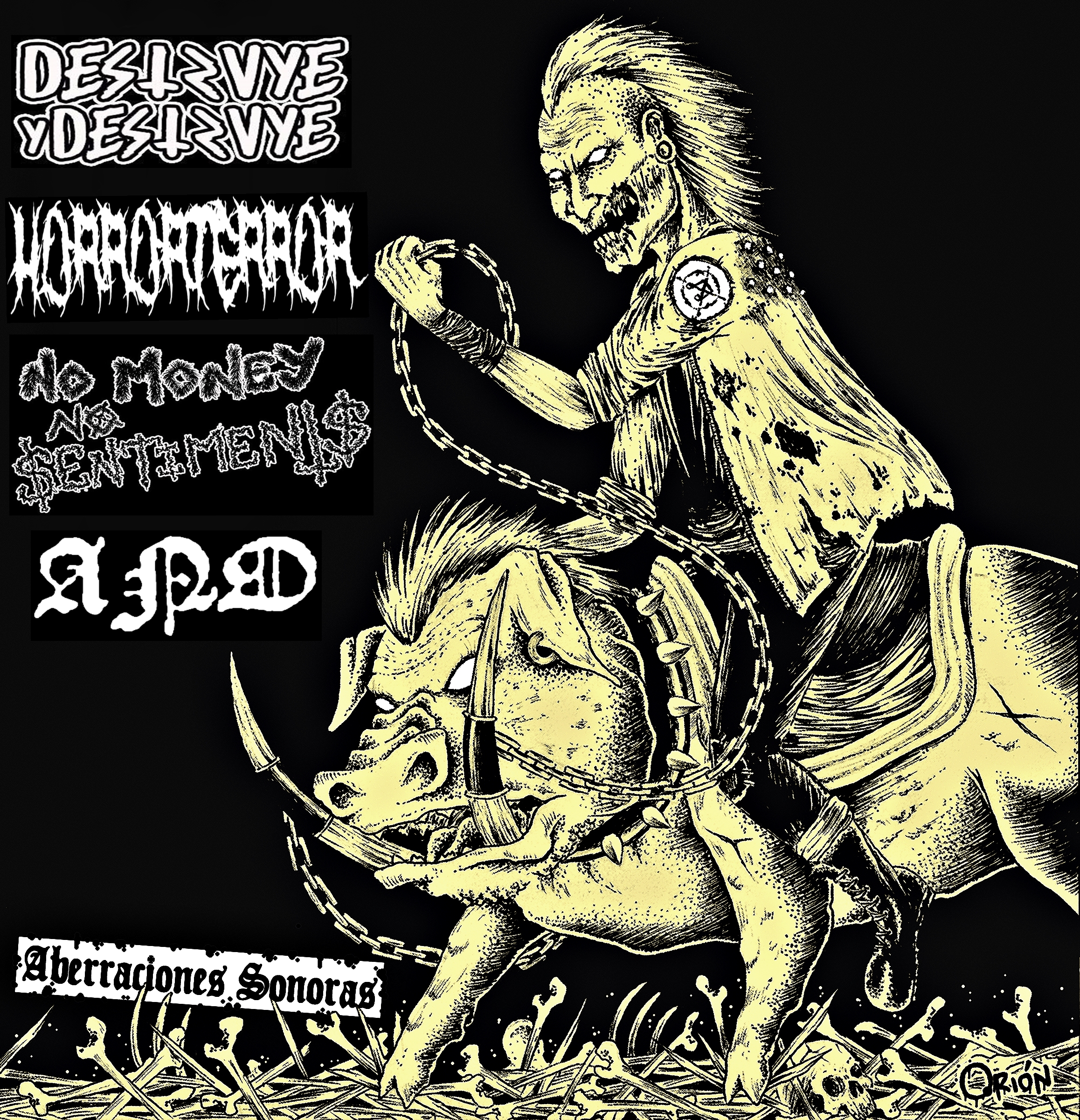 Grabado en Descomunal Records en Medellin Colombia entre Nov de 2017 y 2018. Destruye y Destruye (Quito, Ecu), Horror Terror (Medellin, Col), No Money No Sentiments (Belgica/Ecuador), ANO (Medellin, Col). Arte: Oríon (Armenia - Col).