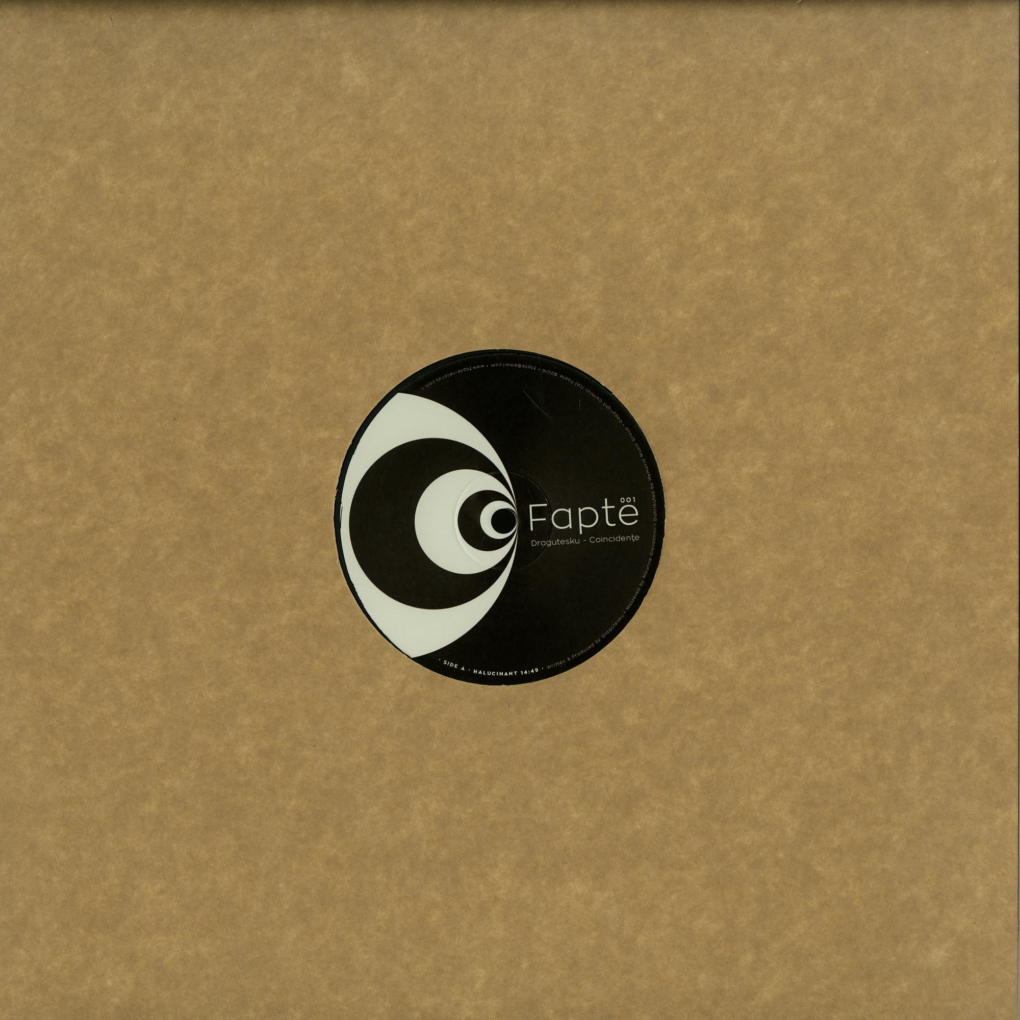 Emerging from the romanian underground scene, talented young artist Dragutesku finds Fapte Records with a prepared artwork for this release and by coincidence the name of his 2 tracks match the already made picture, so we’ve called it COINCIDENTE. On A side is the psychedelic logo of the label matching the track HALUCINANT, having a minimal creepy sound but with a groovy pleasing vibe in the same time, making one hallucinate when listening to it & looking at the spinning center of the vinyl. As for B side, were we can find the track PASTEL, we must say we barely found this pastel-painting by Leonid A. who gave us the right to use it, completing the art for this release maching the colorful minimal sound of the track by Dragutesku later on. These are the true facts and actions (en.trans.= Fapte) we experienced and hope to transmit further along with this 180g limited vinyl.
