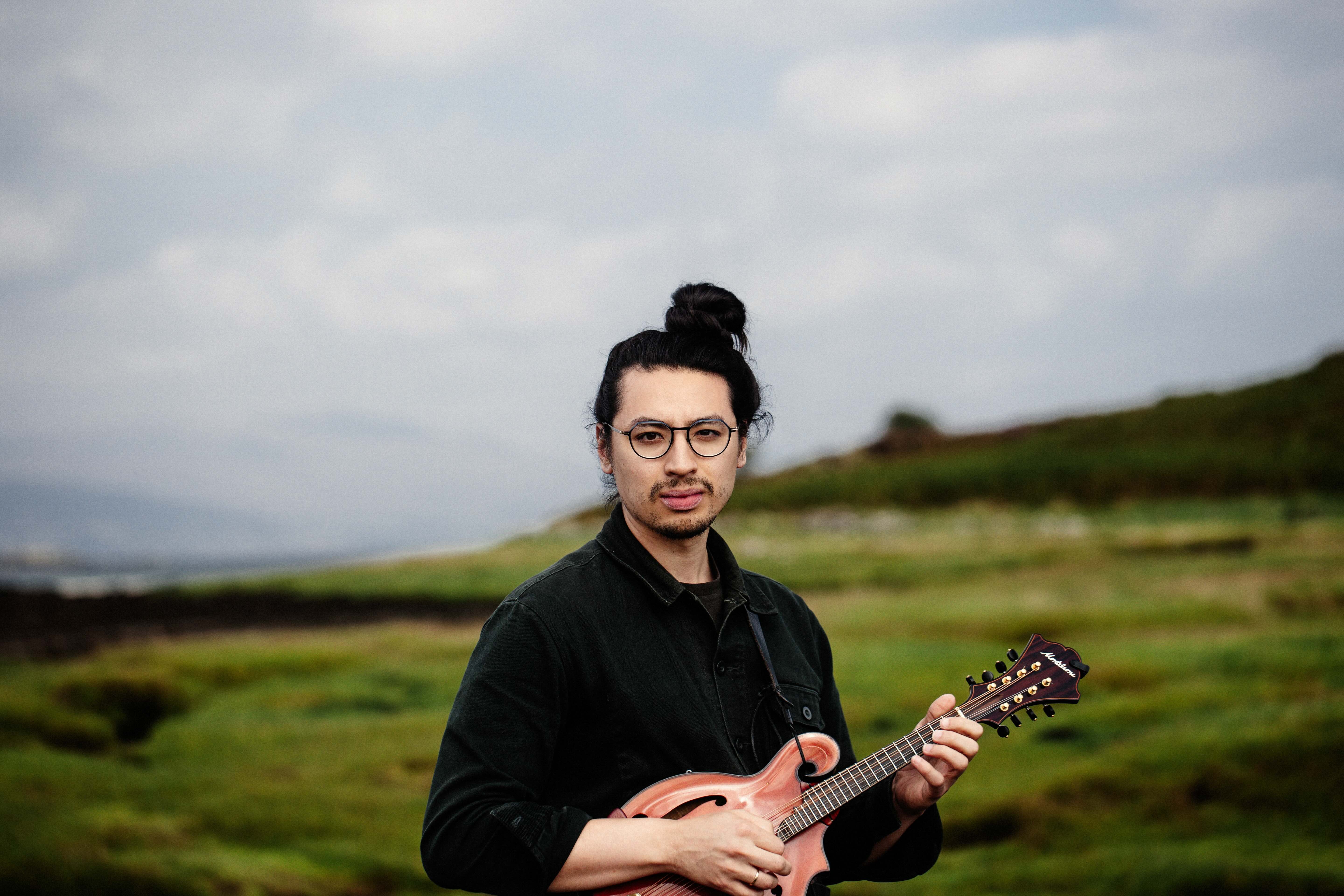 Ethan Setiawan plays a Northfield octave mandolin and uses Pinegrove Leather straps.