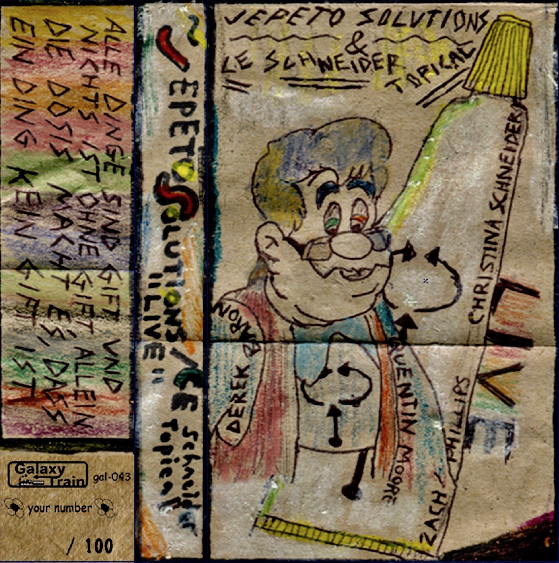 NYブルックリンの人気DIYレーベルOSR Tapesのデザイナーとしても活躍するChristina Schneider嬢と、レーベルオーナーであり、BLANCHE BLANCHE BLANCHEの中心メンバーでもある奇才Zach PhillipsによるゆるゆるポップデュオCE Schneider Topicalが新たに二人のメンバーを加えて改名Jepeto Solutionsに。それぞれのライブ音源(新曲・未発表曲を含む)を中心にしたスプリットカセット。 ソリッドでストレンジで夢心地。Trixie's Big Red MotorbikeやYoung Marble Giants、はたまたThe Shaggsが現在進行形になったような奇妙なローファイポップ!Jepeto Solutionsは初音源リリース。