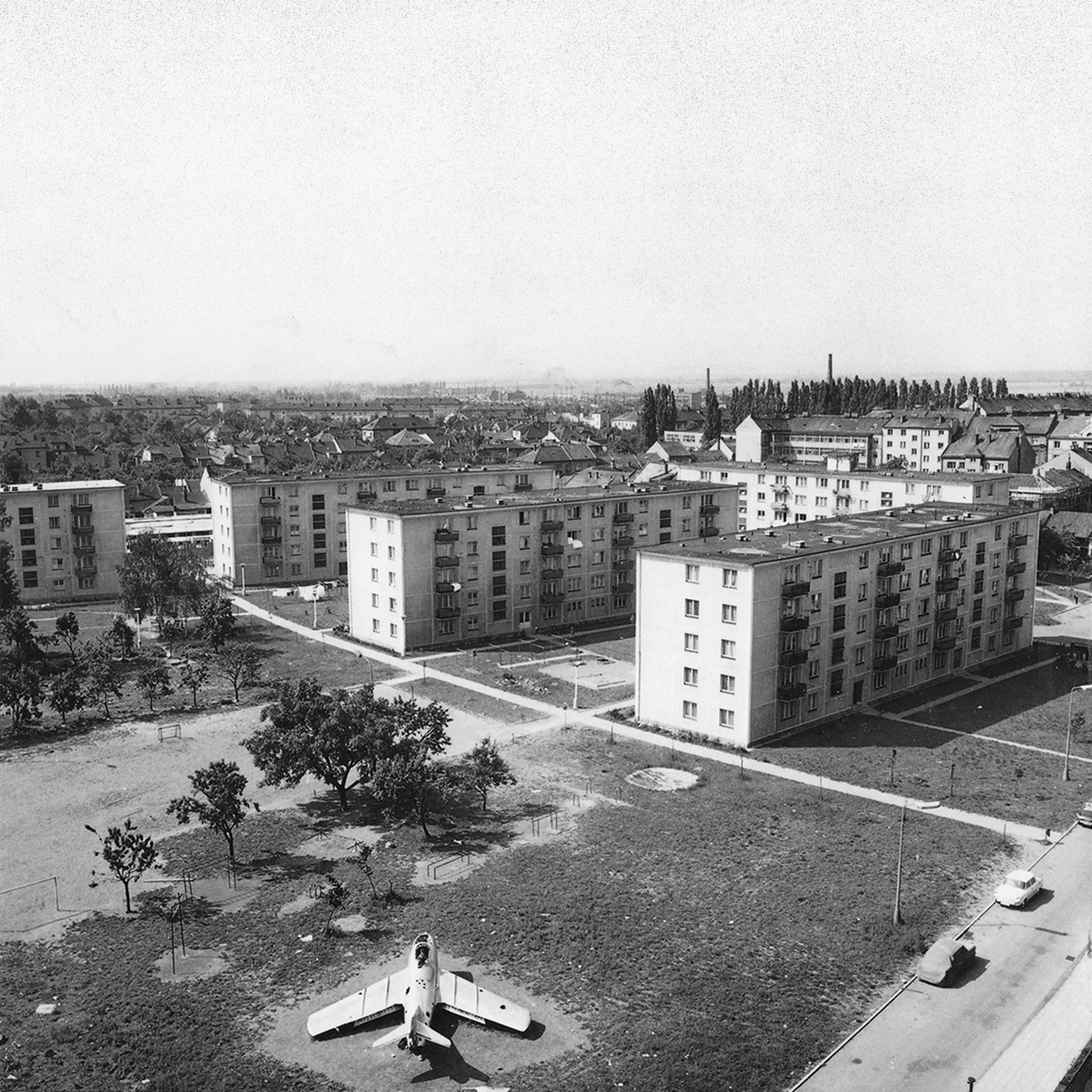 "In Czech we have a saying that you say to a person who comes to visit you at your place: "Act as if you are at home." But it is not your home – it is always only "like home". The same way we felt about our town. We were supposed to have it as a home, but it actually never was one for any of us," explains Jakub Šimanský the name of their new album. The black and white picture on the album's cover comes from a private collection of the town´s unofficial archivist, Jiří Rosmus, but the author is unknown. It shows the view from the sky with the 70s socialist prefabs menacingly towering above the former old housing area destroyed by the renovations. We can see a bizarre old military aeroplane in the centre of the children's playground - a reminder that Přerov also used to be an important military base. "In a town without a soul we had no other choice than to play in our own playground," Tomáš Niesner claims.