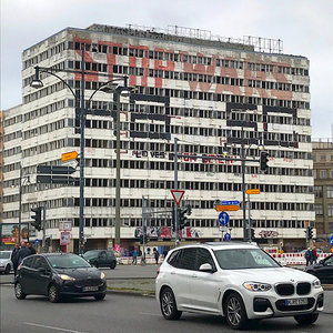 That empty building in Berlin near Alexanderplatz with huge "Stop Wars" graffiti that everyone takes photos of.