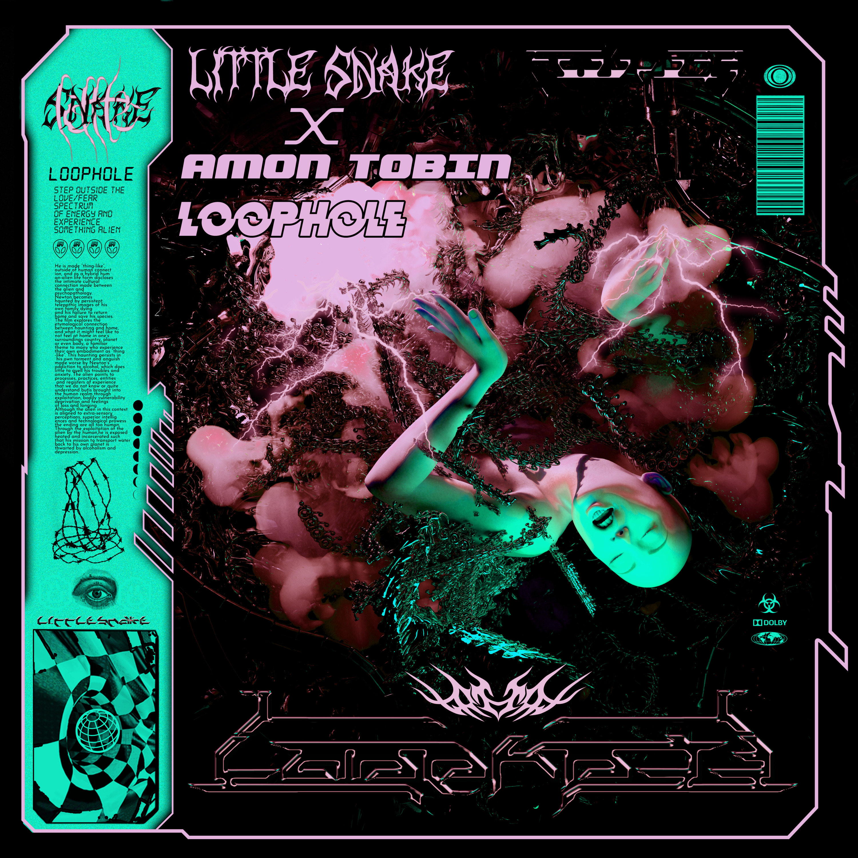 “‘Loophole’ – to me – is the embodiment of a portal in which transfiguration occurs. A transfiguration in which we return to a heartspace beyond all delusions within this 3D hologram and return to a state of peace in which we truly know. We know and embody truth beyond our physical minds comprehension and temporary emotions. It takes us to a place where fear and love no longer hold any power and control over us, and instead brings us to a place of complete freedom to truly exist. I would like to extend a huge thanks to one of my all time greatest inspirations – Amon Tobin – for writing this alongside me. It is truly a full circle moment for me.”