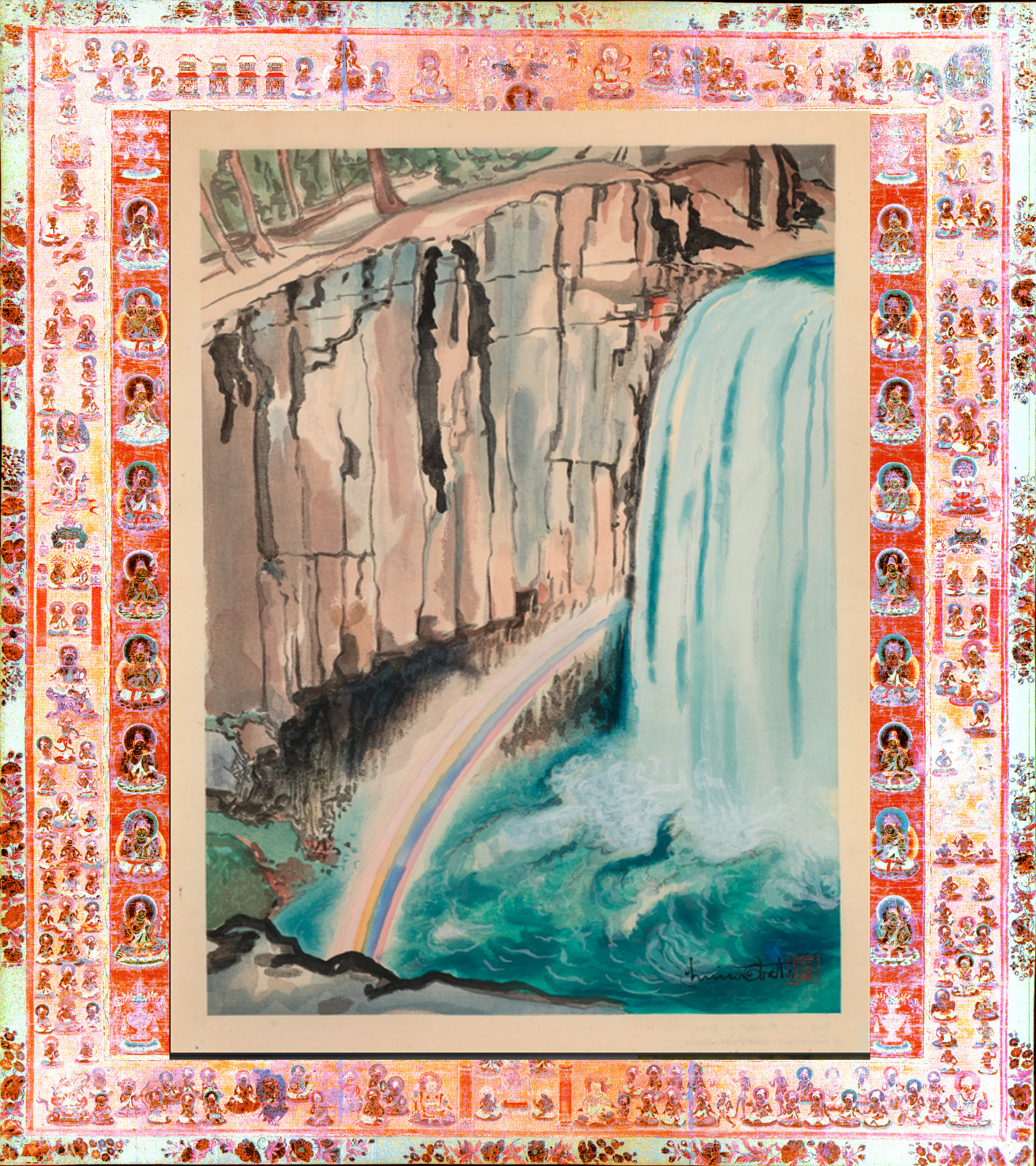Album Art: Taizokai Womb World mandala with Chiura Obata's 'Rainbow Falls', Inyo National Forest