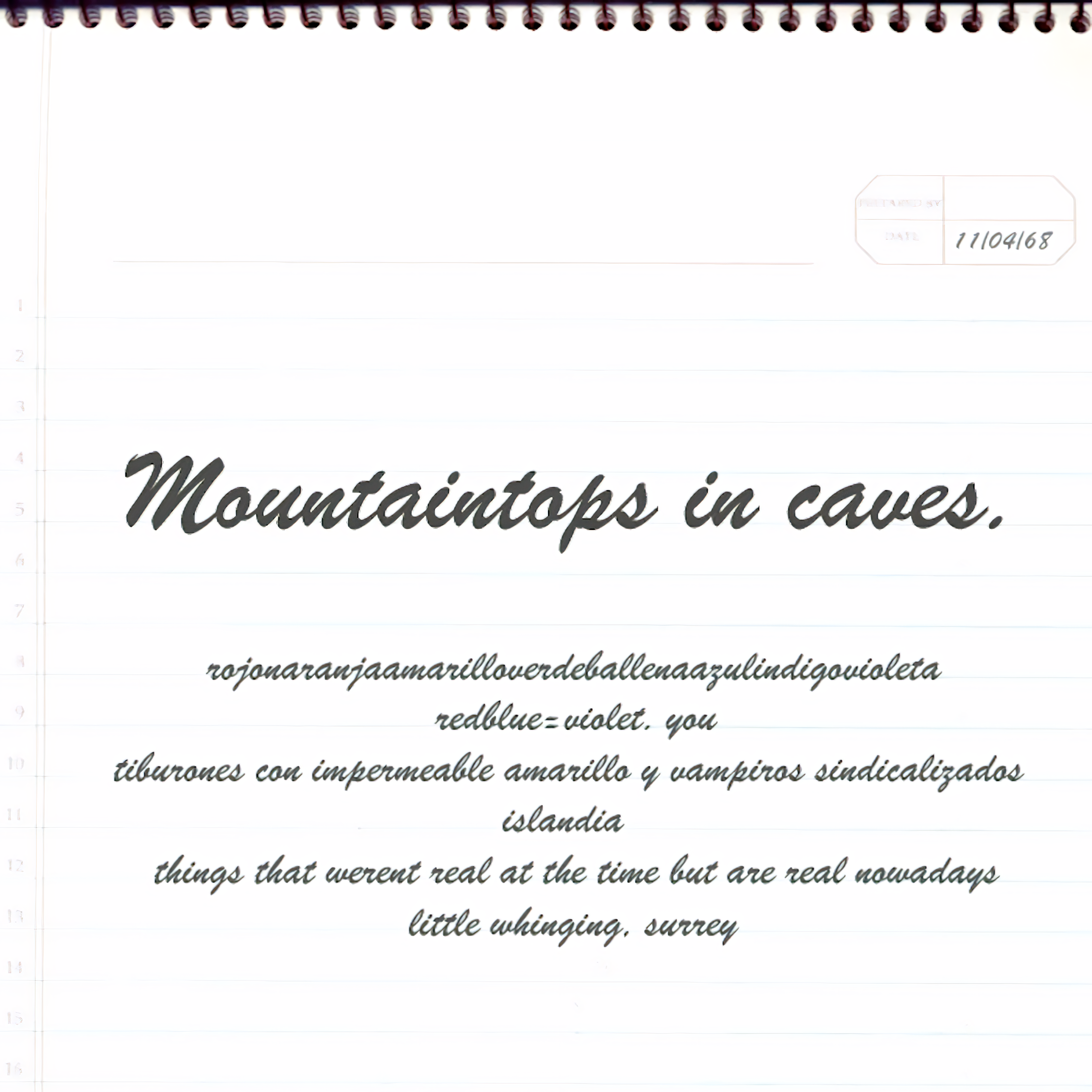 "Myspace Demos" was the second release by Mountaintops In Caves, and the last before the name change to "mountaintops.", written between 2008 and 2009.