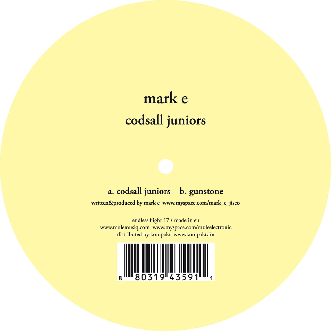 ark E Is A One Of The Hottest Nu Disco Artist.his Release On Running Back, Jisco Music Are Always Highly Evaluated. A Side, "Codsall Juniors"Which Already Included To The Compilation "I'm Starting To Feel Ok Vol.3 Is A Typical His Trademark Slow Mo House. B Side, "Gunstone" Is A Mark E Taste Beat Down Track.if You Like The Track Of Rekid Or Stl,You Will Love.