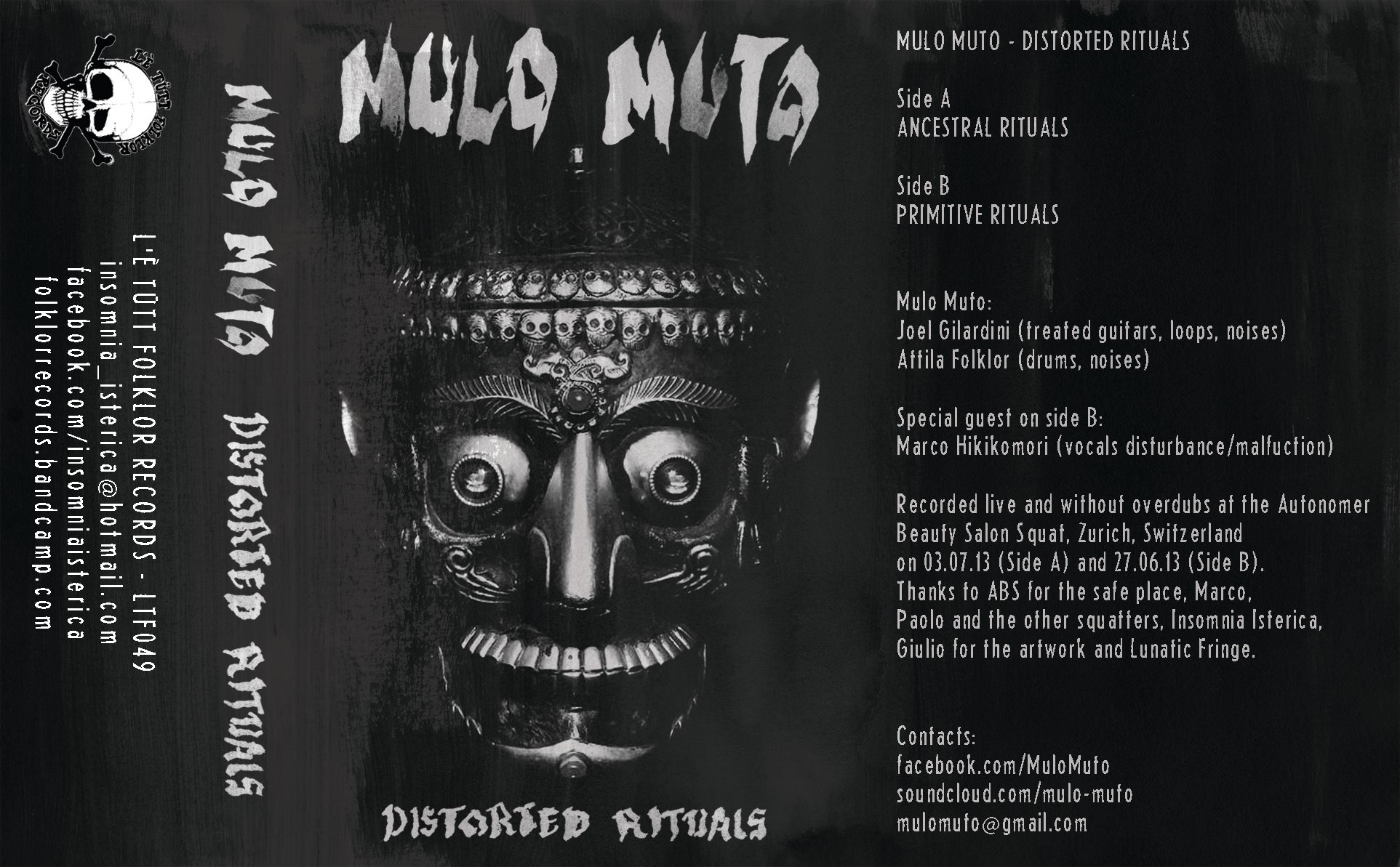 Mulo Muto is a post-industrial noise project created by Joel Gilardini and Attila Folklor in Zurich (Switzerland) in 2012. MM is a sort of chimera that mixes different kinds of experimentation and sonic research: noise, synthesizers, treated guitars, electroacoustic tradition, etc. are the means used for the never-ending evolution of the project.