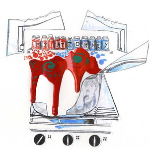 An ambitious plan to record a record in a remote cottage in Hebden Bridge was conceived and organised by Ian. Off we all went, with four cars of gear, bags of shopping and sea salt to wash ourselves with. What elapsed out in the country was a... strange set of events. It snowed outside. The fire wouldn't light. The guitars kept going sharp during takes because the house was so cold. There weren't enough beds because much of the living and sleeping spaces were occupied by racks of gear. The bass amp lived in the bathroom. Many chopped vegetables were put in a small saucepan, and Sophie put oranges in Ian's mouth and then photographed him. We all came back and quietly promised never to do anything like that again.