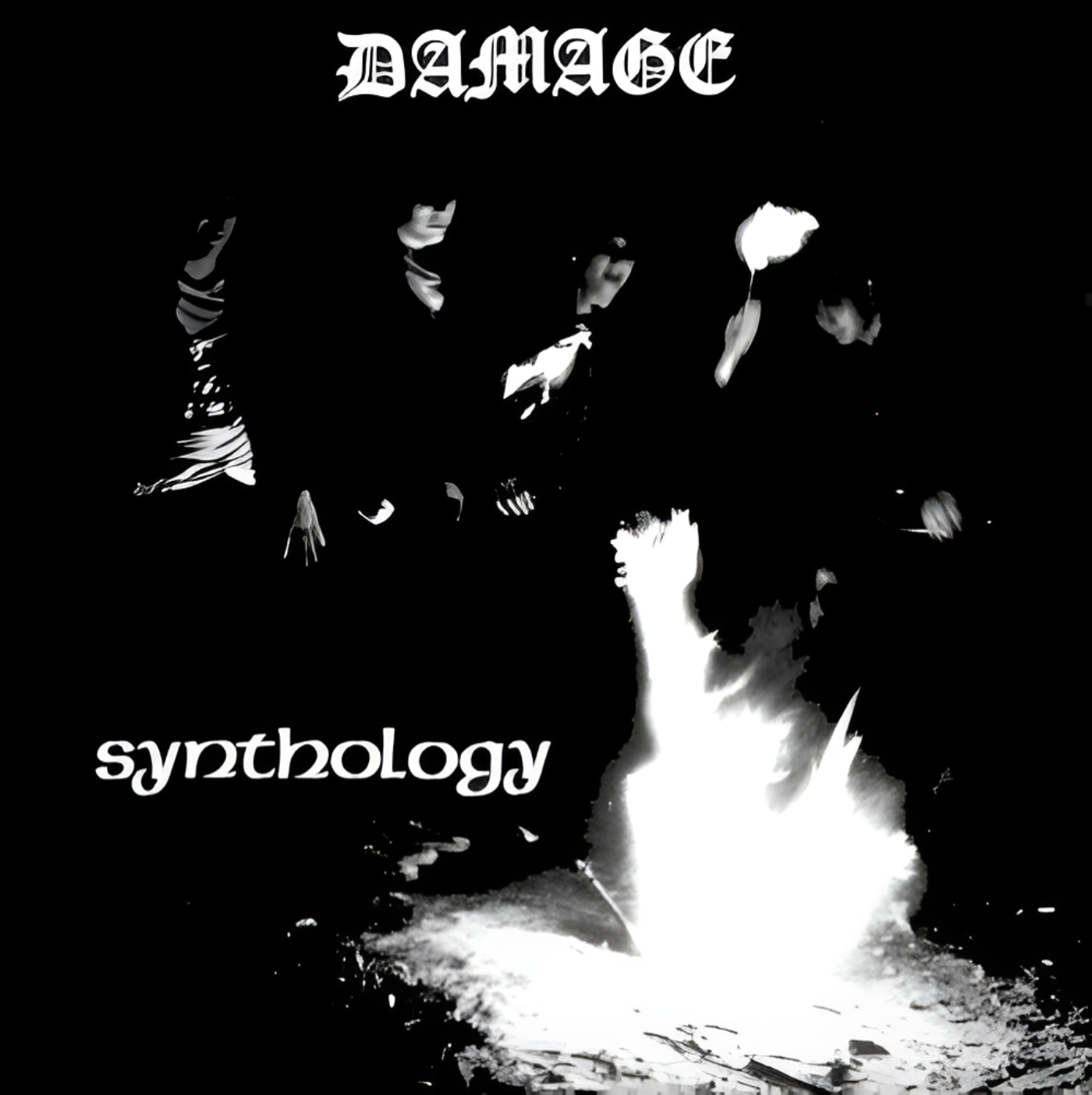 Synthology was produced and recorded by Randy Meyer and Damage at Adult Motel recording studio. All songs written by Damage © copyright 1986. Cover design and photography by Mike Brown. This is a Space Fish Records release.