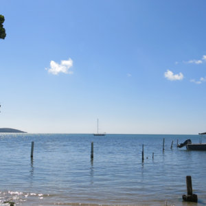 Looking out at the water, calm and clear