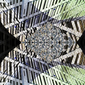 Artwork is a double exposure photograph of a high rise building in Coventry, England.