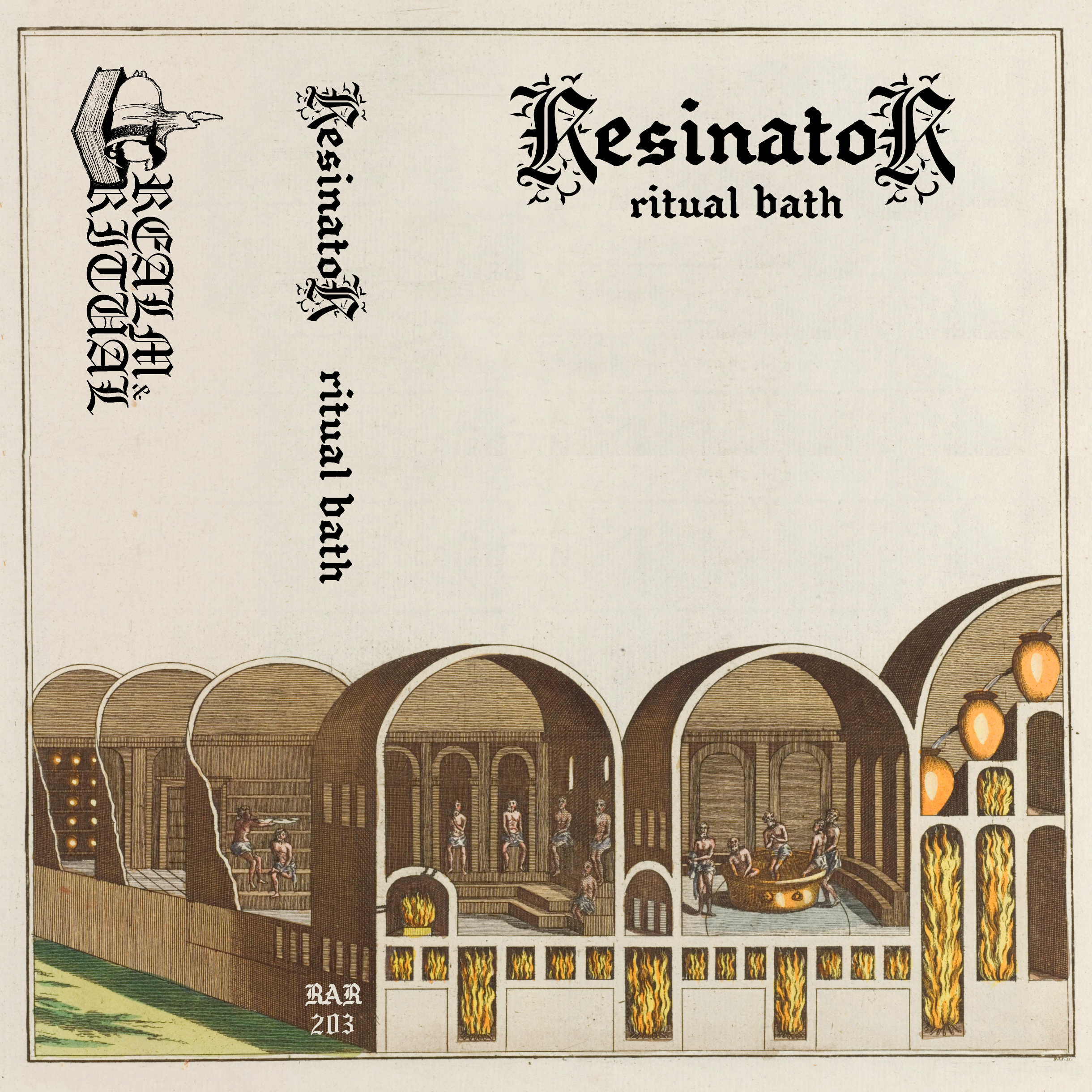 Available on tape Friday, March 21st, 2025. ++++++++++ Digital pricing set to $666 to encourage listeners to buy digital downloads directly from the artist: https://resinator.bandcamp.com/music ++++++++++ RAR203 | Resinator - Ritual Bath