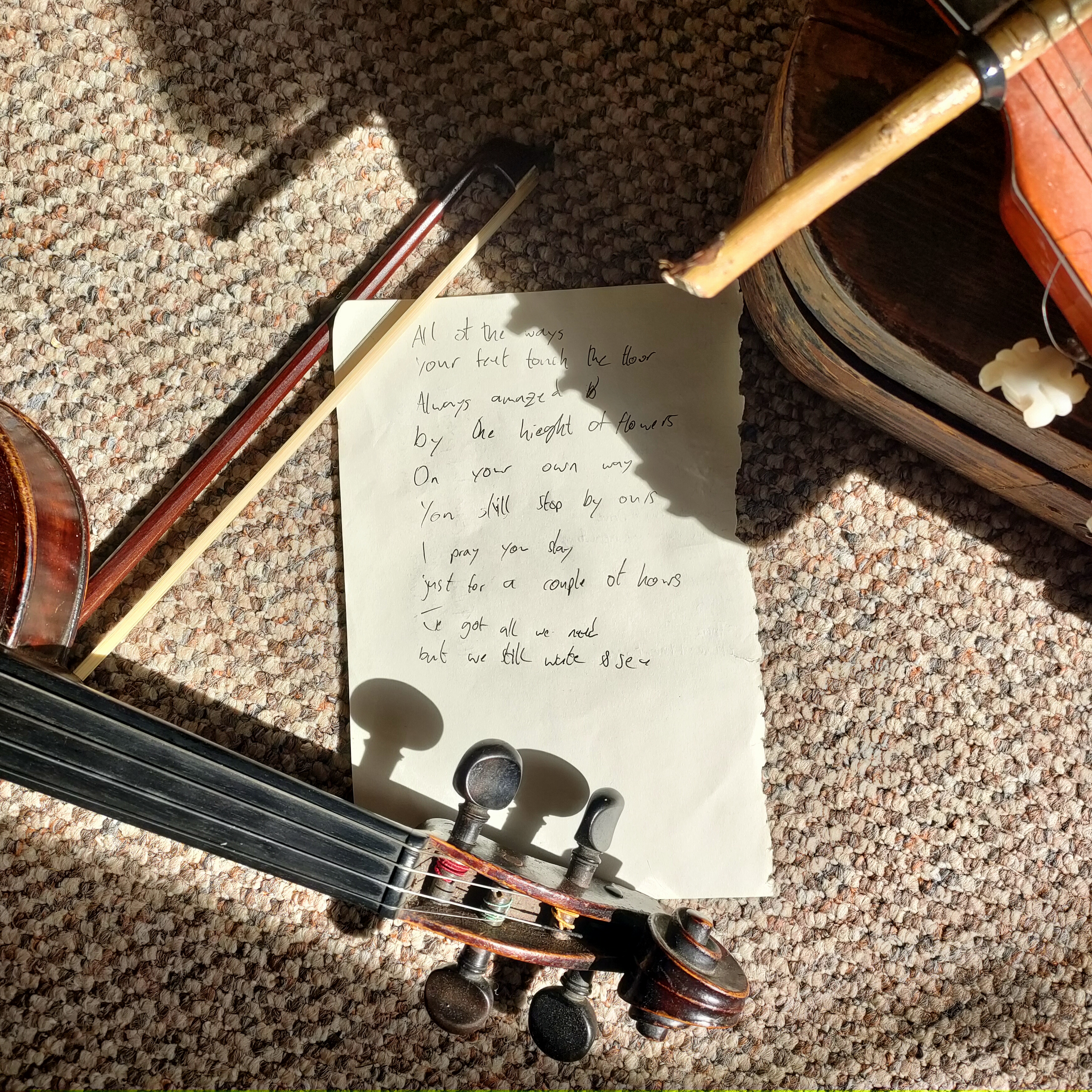 Here's an overly dramatic song about a Cat on the most mangled guitar. The nut of the guitar is a twig and is held in place with a cable tie.