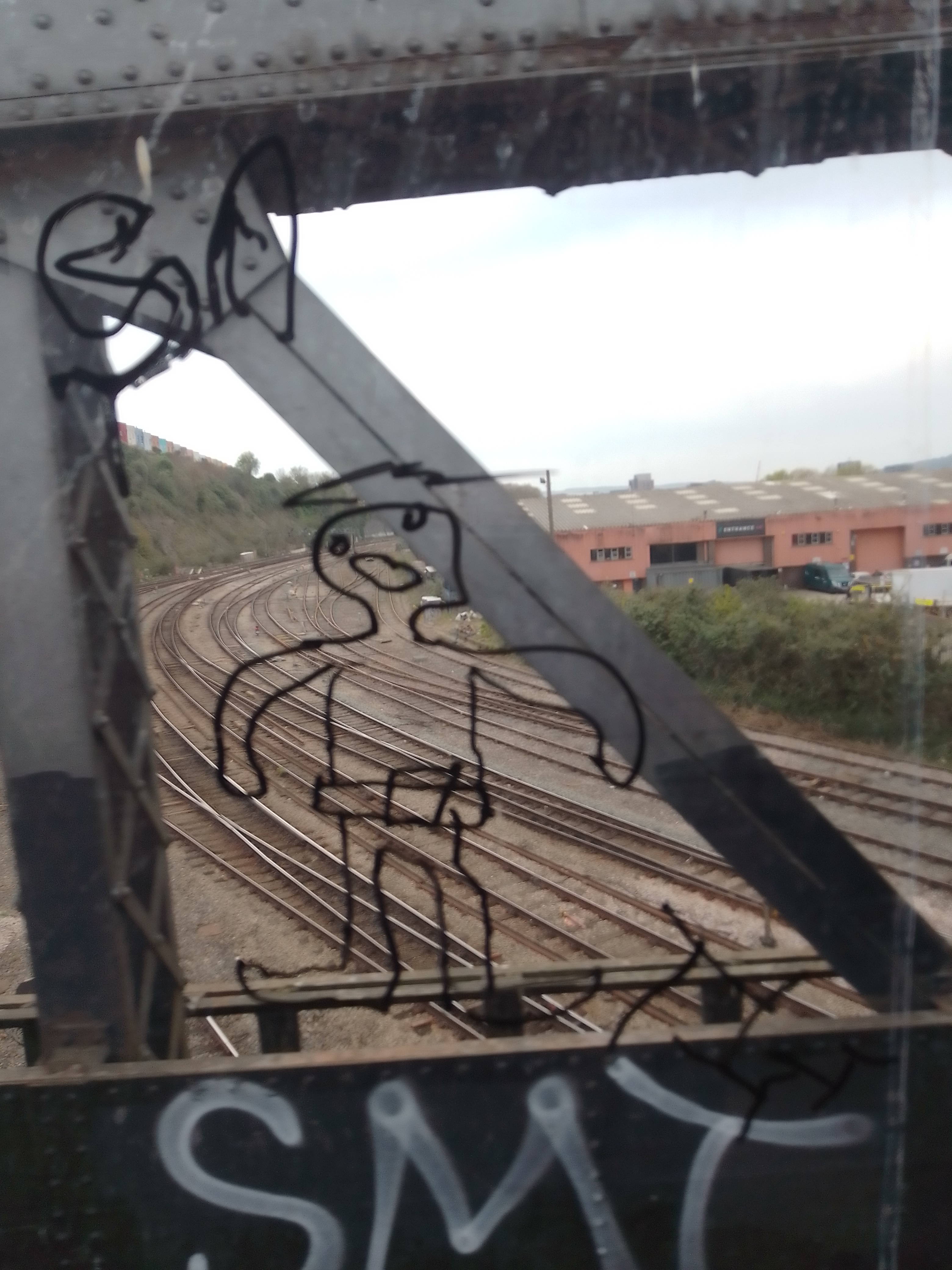 I was on a bus in mid April 2025 and saw some unusual graffiti on the window at the back of the top deck. I took a few photos and really enjoyed the way the background to the graffiti had changed due to the bus's motion so I took more, a few hundred in total.