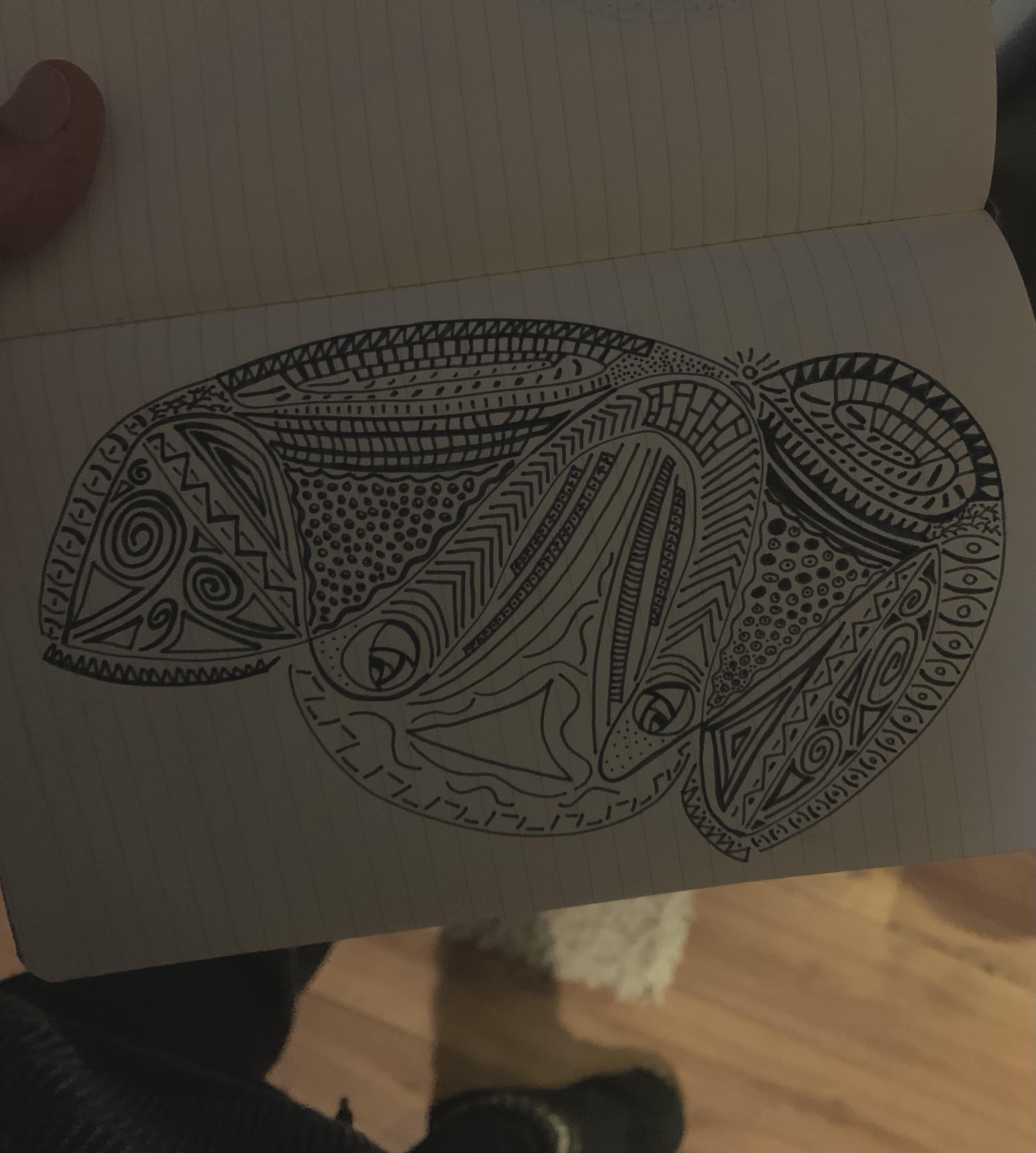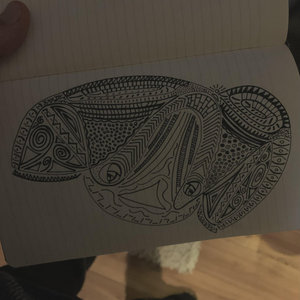 Ukelele pre-recorded on an iPhone, other things at StudiOrange, The Hague. Drawing is part of a series of masks.