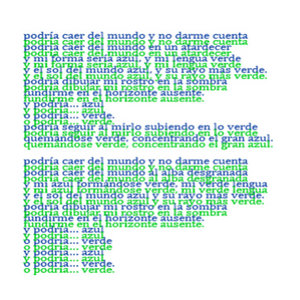Inevitable te fundiste con la tierra, el cielo y el agua; y en ese huir azul fundiste también mi recuerdo con el vacío, y ahora eres el silencio que cubre el espacio que dejaste, y eres las esquirlas en mi corazón que palpitan todavía. y no hay homenaje, no hay forma de mejor recordarte que con el silencio que demuestra lo que eres, el anverso de lo que somos, pero que en amor eterno, ese estar verde, estás siempre totalmente aquí, presente, como ser ya hecho, inevitable, con el agua, el cielo y la tierra.