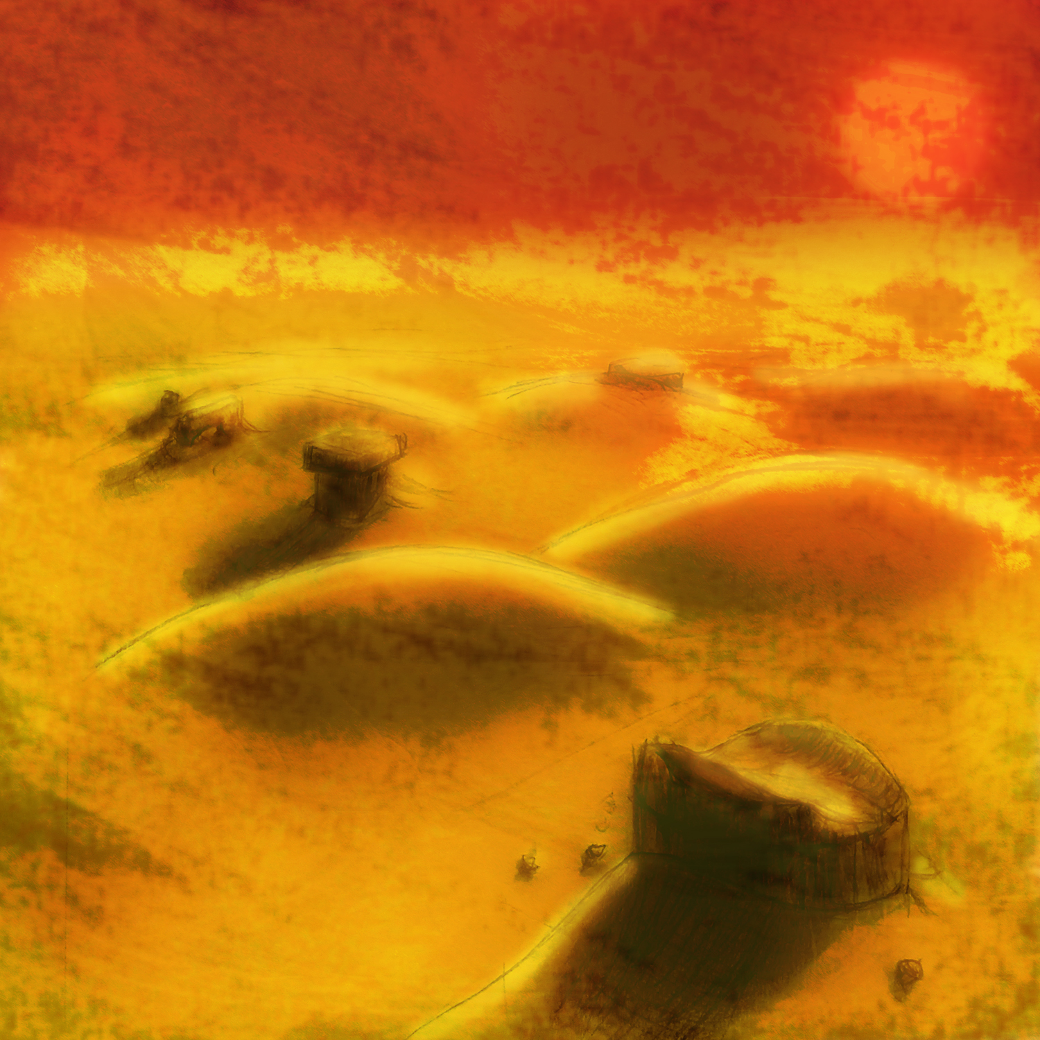 Marching past the temples of dust,