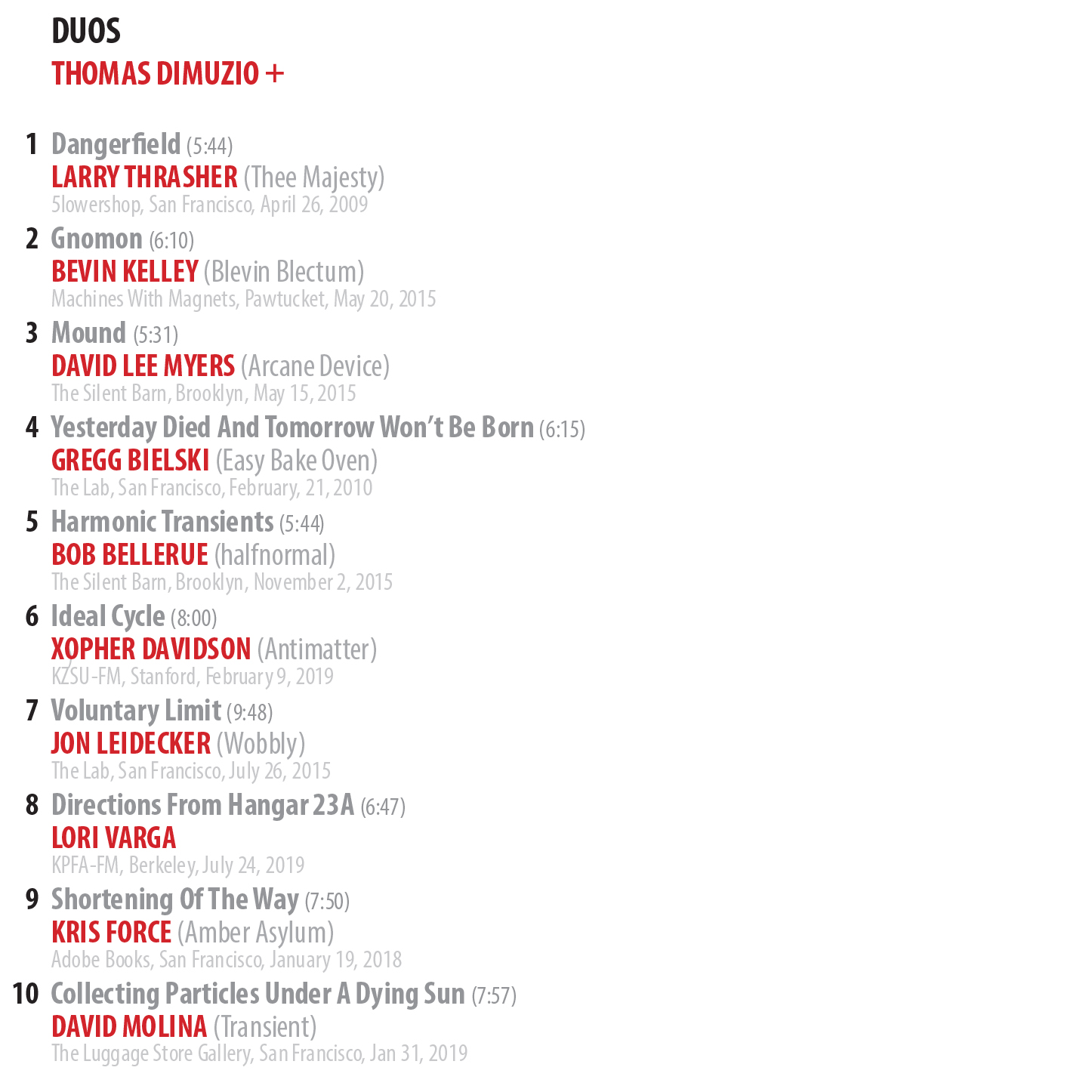 | 6. | Thomas Dimuzio + Xopher Davidson (Antimatter) - Ideal Cycle | 8:01 |