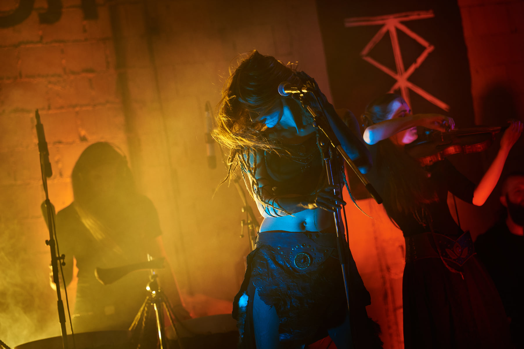 Vartra is a collective of musicians, dancers and craftsmen based in Belgrade, Serbia, gathered around a common goal of bringing magic and mystery to the stage through a unique blend of their skills, interests and experiences. Our music is influenced by various genres, from traditional Balkan music characterized by the merging of Slavic and oriental cultures, through a variety of traditional music styles of indigenous cultures across the world, to a more harsh, industrial and dark atmospheric sound, common for genres such as doom metal. Most of our lyrics stem from old folk incantations and mantras from the Balkan area, that are sung in Serbian and Vlach languages. Our performances are enriched by utilizing handmade drums and rattles crafted by main instrumentalist and vocalist Siniša Gavrić. These instruments are made from animal skins and foraged materials from the rivers and mountains of Serbia.