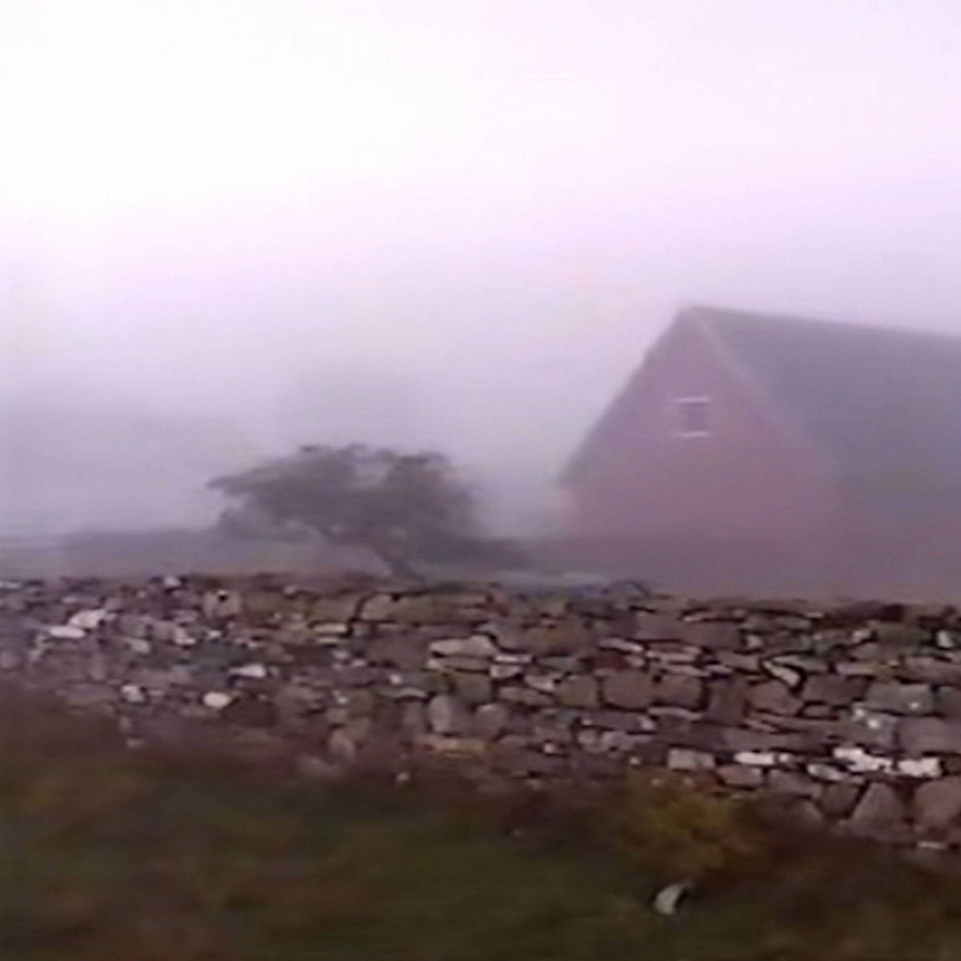 morgonpromenad runt gården i dimman
