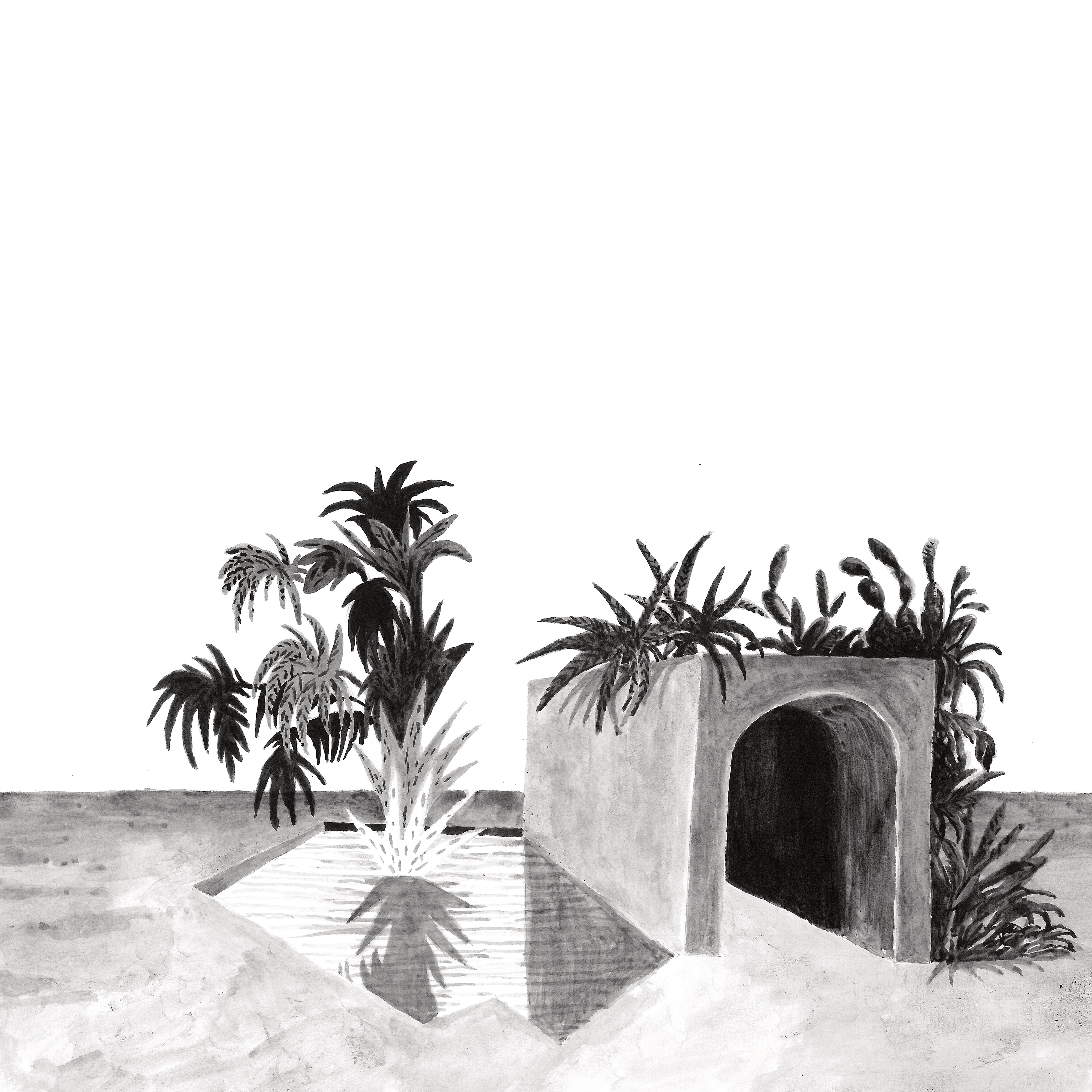 The visuals are part of the series called “Jardins” 2018; ink on paper, by Yoann Pisterman