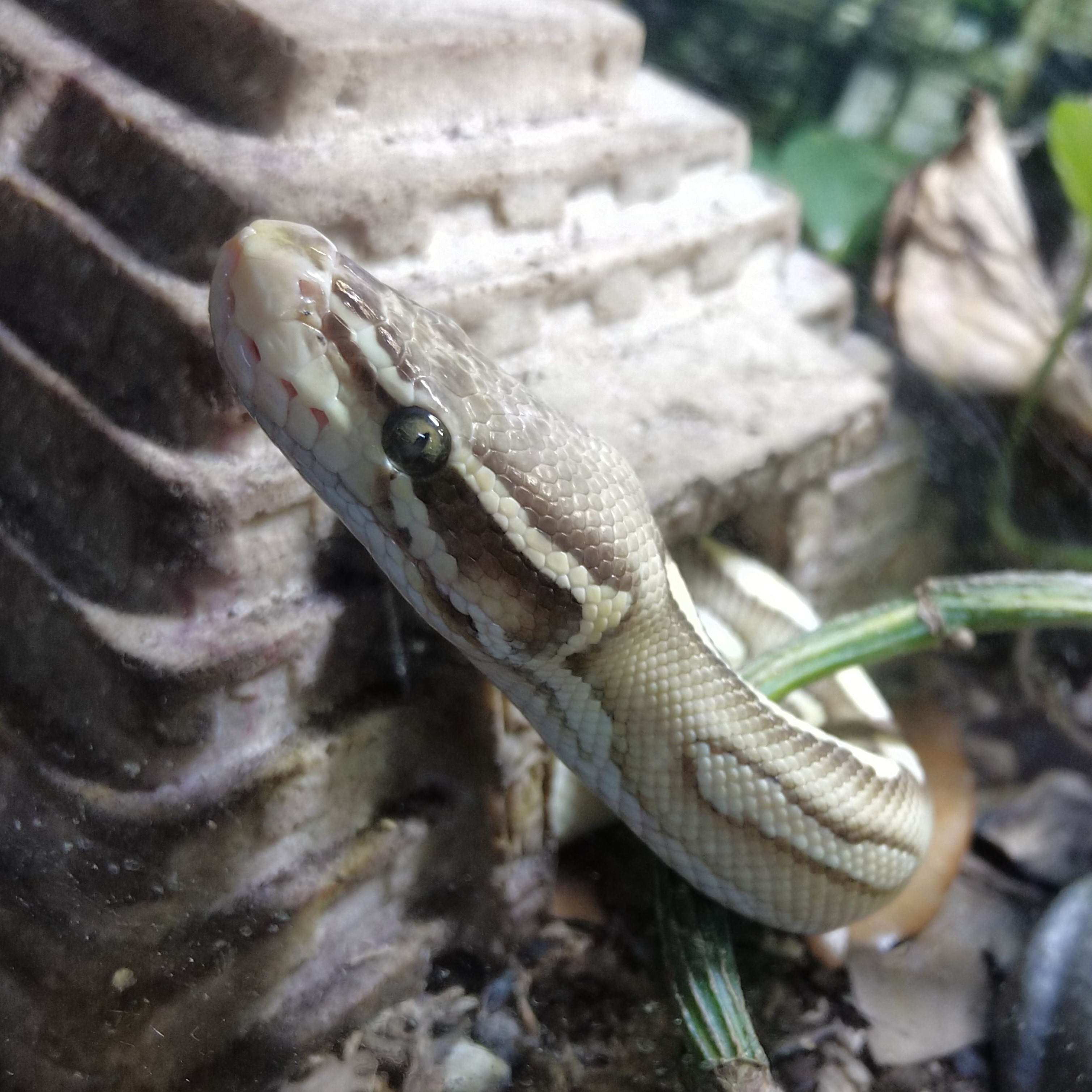 The snake's name is BK (which stands for whatever I want) and he is a 3 year old ball python, lesser pastel yellow belly morph.
